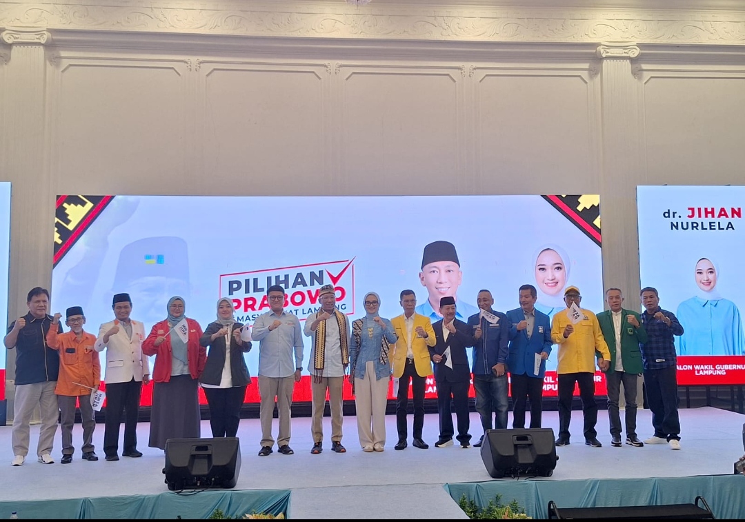 Bandarlampung (LW): Mengusung tema “Bersama Menuju Lampung Maju,” 11 partai politik di Lampung mendeklarasikan dukungan penuh kepada pasangan calon Gubernur dan Wakil Gubernur Lampung, Rahmat Mirzani Djausal dan Jihan Nurlela, Kamis (29/8/2024).