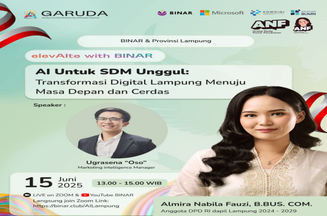 Dengan tema “AI untuk SDM Unggul Lampung: Transformasi Digital Menuju Masa Depan Cerdas”, kegiatan ini menggaet narasumber profesional, Ugrasena “Oso”, Marketing Intelligence Manager, dan didukung oleh Microsoft serta Komindigi.