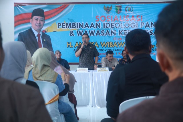 Bandarlampung (LW): Anggota DPRD Provinsi Lampung dari Daerah Pemilihan (Dapil) Kota Bandarlampung, Andika Wibawa SR, melaksanakan kegiatan sosialisasi Pembinaan Ideologi Pancasila dan Wawasan Kebangsaan yang bertujuan untuk membangun pemahaman dan kesadaran masyarakat tentang pentingnya Pancasila sebagai dasar negara dan pedoman hidup bermasyarakat.