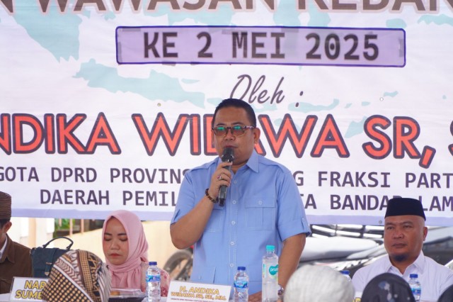 Bandarlampung (LW): Anggota DPRD Provinsi Lampung dari Fraksi Gerindra, Andika Wibawa, kembali menegaskan pentingnya penguatan ideologi Pancasila di tengah derasnya arus ideologi asing yang berpotensi memecah belah bangsa. Hal ini disampaikannya dalam kegiatan Pembinaan Ideologi Pancasila dan Wawasan Kebangsaan (PIPWK) ke-2 yang digelar di daerah Kota Baru, Kecamatan Tanjung Karang Timur, Minggu (25/5).