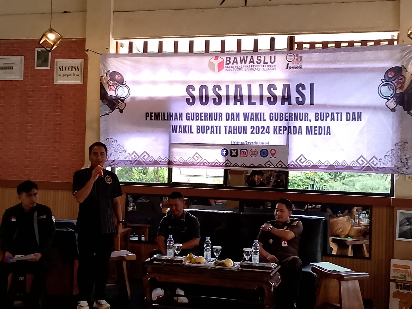 Lampung Selatan (LW): Jelang Pilkada Lampung Selatan November mendatang, Badan Pengawas Pemilu (Bawaslu) Kabupaten Lampung Selatan menggelar sosialisasi pemilihan Gubernur/Wakil Gubernur, dan Bupati/Wakil Bupati tahun 2024 kepada awak media, Selasa (11/6).