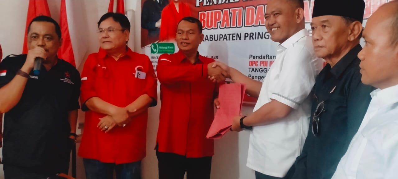 Penyerahan formulir bacalon kepala daerah diterima oleh Ketua DPC PDIP Pringsewu Palgunadi dan tim penjaringan.