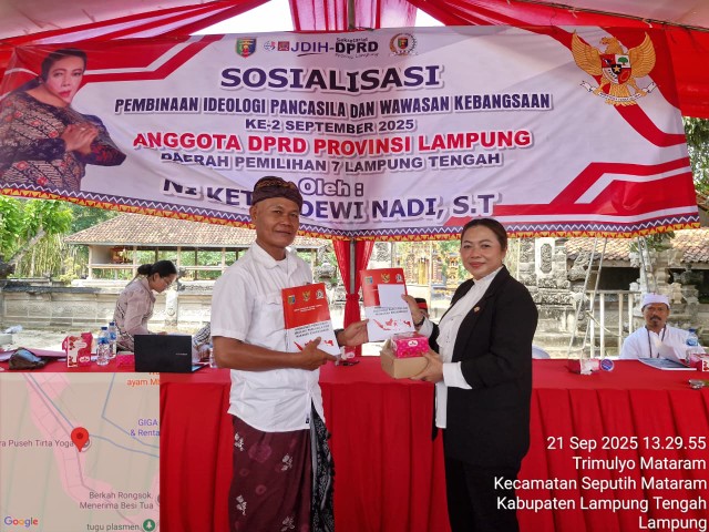 Lampung Tengah (LW): Semangat kebangsaan membara di Balai Banjar Tirta Yoga, Kampung Trimulyo Mataram, Kecamatan Seputih Mataram, Minggu (21/9). Para pemuda-pemudi setempat hadir mengikuti Sosialisasi Pembinaan Ideologi Pancasila dan Wawasan Kebangsaan (PIPWK) yang digelar Anggota DPRD Provinsi Lampung Ni Ketut Dewi Nadi.