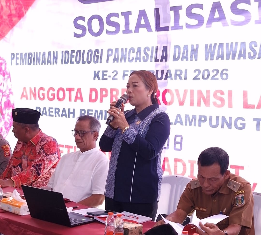 Bandarlampung (LW): Anggota DPRD Provinsi Lampung daerah pemilihan Lampung Tengah, Ni Ketut Dewi Nadi, mengajak masyarakat Lampung Tengah, khususnya Kampung Rama Dewa, Kecamatan Seputih Raman, untuk memperkuat pemahaman terhadap nilai-nilai dasar negara di tengah dinamika kehidupan sosial yang terus berkembang.