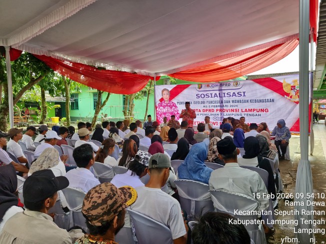 Bandarlampung (LW): Anggota DPRD Provinsi Lampung daerah pemilihan Lampung Tengah, Ni Ketut Dewi Nadi, mengajak masyarakat Lampung Tengah, khususnya Kampung Rama Dewa, Kecamatan Seputih Raman, untuk memperkuat pemahaman terhadap nilai-nilai dasar negara di tengah dinamika kehidupan sosial yang terus berkembang.