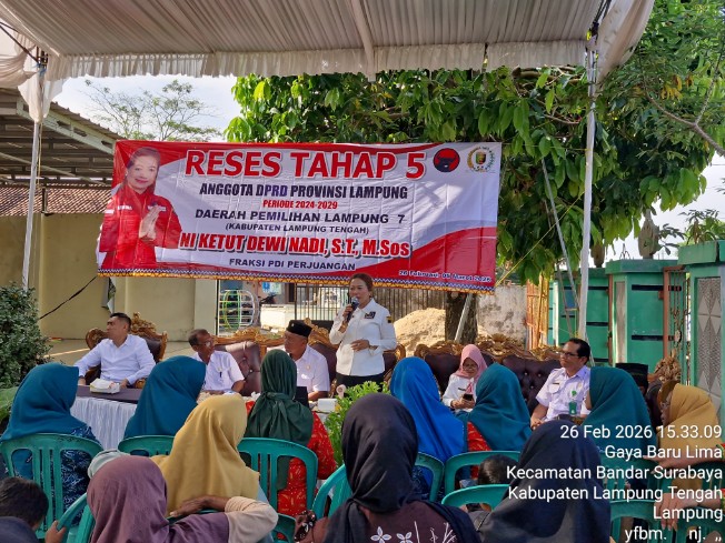 Lampung Tengah (LW): Beragam persoalan dasar masyarakat mencuat dalam kegiatan reses Anggota DPRD Provinsi Lampung daerah pemilihan VII, Ni Ketut Dewi Nadi, di Kampung Gayabaru V, Kecamatan Bandar Surabaya, Kabupaten Lampung Tengah (26/2). Warga memanfaatkan momentum tersebut untuk menyampaikan langsung kebutuhan yang selama ini mereka harapkan mendapat perhatian pemerintah.