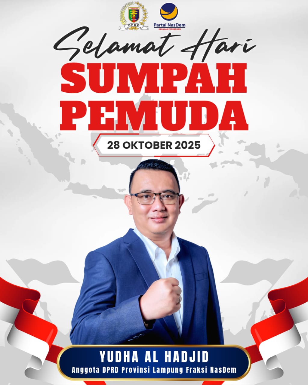 Bandarlampung (LW): Anggota DPRD Provinsi Lampung Dapil III (Metro, Pesawaran, dan Pringsewu) sekaligus Wakil Ketua DPW NasDem Lampung, Yudha Al Hadjid, menegaskan kembali pesan mendasar Sumpah Pemuda, yakni pemuda harus menjadi penjaga persatuan Republik Indonesia di tengah gelombang perpecahan yang berpotensi lahir dari ruang digital maupun dunia nyata.