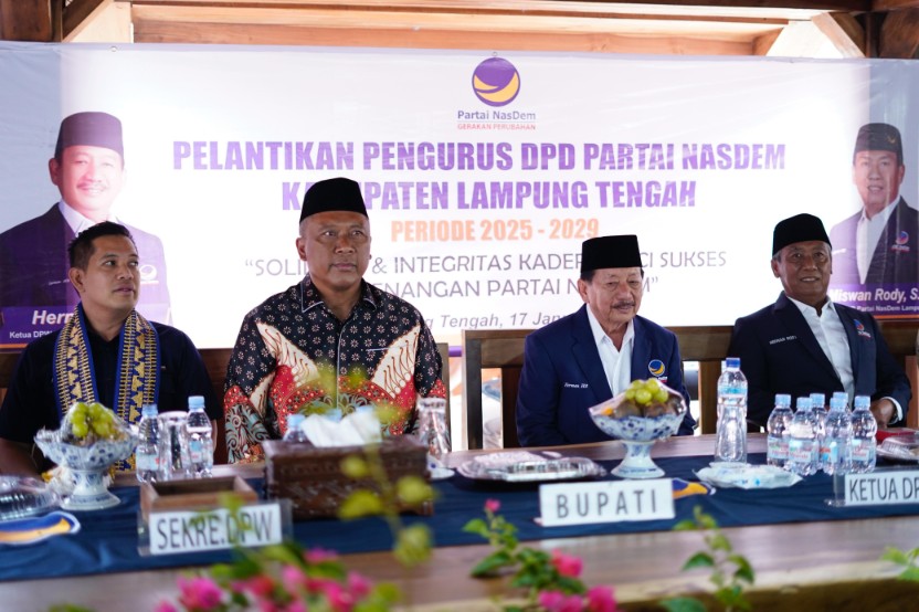Pelantikan dilakukan langsung oleh Ketua DPW Partai NasDem Provinsi Lampung, Herman HN, didampingi Sekretaris DPW Fauzan Sibron. Acara ini turut dihadiri jajaran pengurus DPW NasDem Lampung serta para Ketua DPD Partai NasDem kabupaten/kota se-Provinsi Lampung, menandakan kuatnya dukungan struktural terhadap kepengurusan baru NasDem Lampung Tengah.