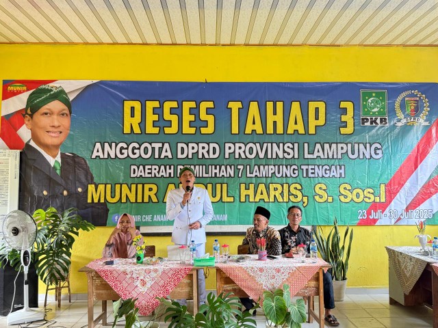 Lampung Tengah (LW): Anggota DPRD Provinsi Lampung DapilLampungTengah, Munir Abdul Haris, S.Sos.I, melaksanakan reses tahap III secara maraton di 12 titik di wilayah Lampung Tengah. Dalam kurun waktu 10 hari, mulai 23 Juli hingga 1 Agustus 2025, Munir menjangkau langsung warga di enam kecamatan untuk menyerap aspirasi sekaligus menyalurkan berbagai program bantuan, terutama di bidang pendidikan.