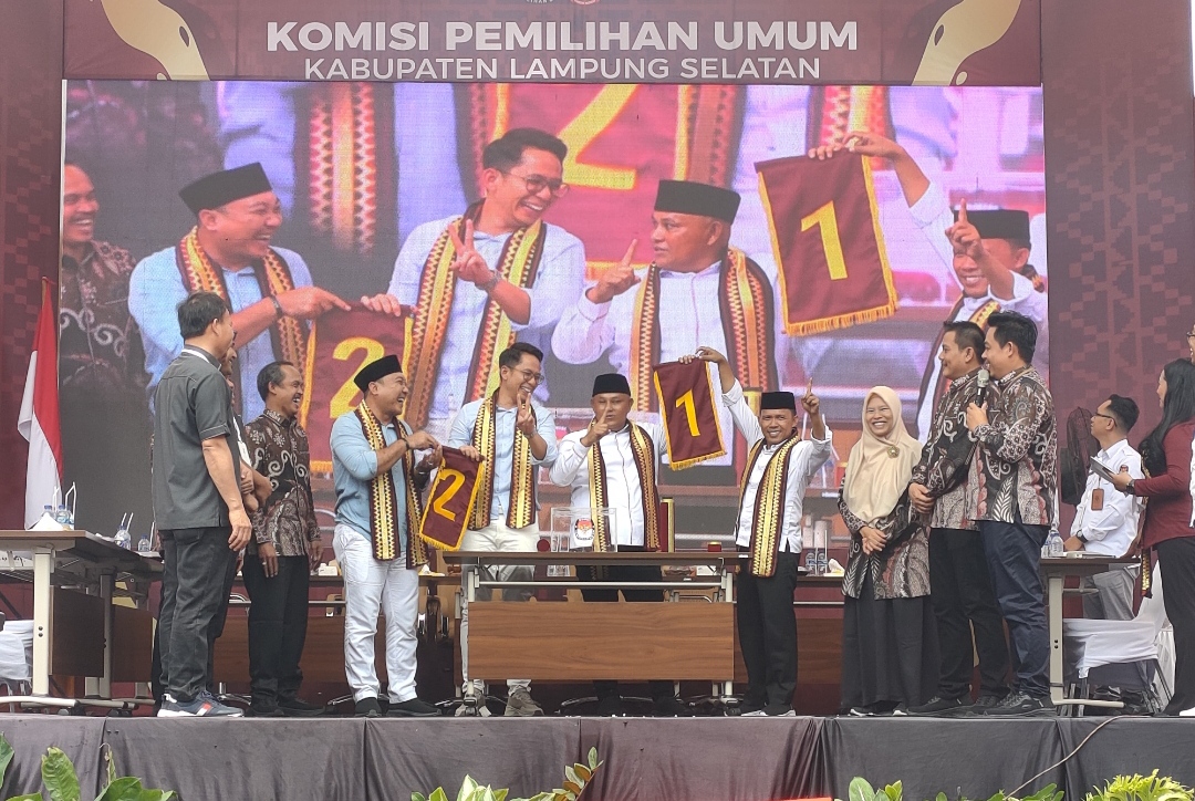 Lampung Selatan (LW): Dua pasangan calon Bupati dan Wakil Bupati Lampung Selatan, secara resmi menerima nomor urut pada pemilihan kepala daerah (Pilkada) Lampung Selatan pada 27 November 2024 mendatang.