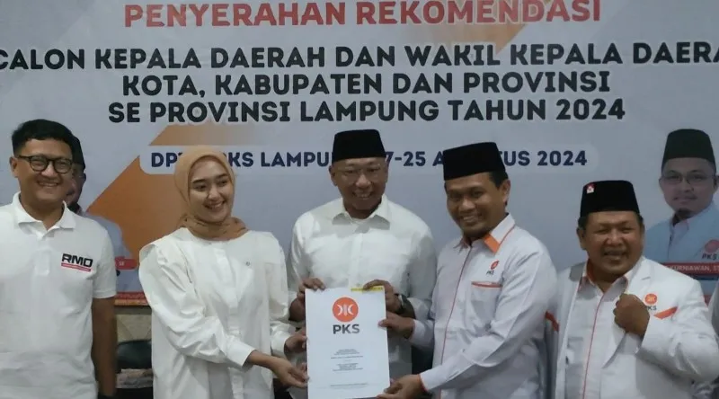 Bandarlampung (LW): Partai Keadilan Sejahtera (PKS) Provinsi Lampung menyerahkan dukungannya kepada pasangan Rahmat Mirzani Djausal (RMD) dan Jihan Nurlela untuk maju di Pemilihan Gubernur (Pilgub) Lampung, November mendatang.