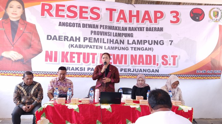 Lampung Tengah (LW): Di tengah sorotan tajam masyarakat terhadap ketidakpastian ekonomi dan infrastruktur desa, Anggota DPRD Provinsi Lampung, Ni Ketut Dewi Nadi, kembali menunjukkan komitmennya dengan turun langsung ke lapangan melalui agenda reses di Aula Kecamatan Bandar Mataram, Minggu (27/7).
