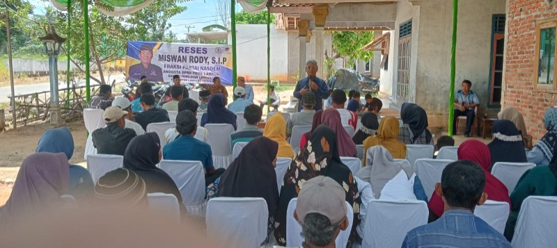 Lampung Tengah (LW): Aspirasi warga terus mengalir dalam agenda Reses Anggota DPRD Provinsi Lampung Dapil Lampung Tengah, Miswan Rody. Kali ini, legislator NasDem yang juga menjabat Ketua DPD NasDem Lampung Tengah tersebut menyerap keluhan masyarakat di Kampung Sukajaya, Kecamatan Anak Ratu Aji (14/11). Dua persoalan utama yang paling mendesak adalah kondisi jalan utama yang rusak parah serta minimnya lapangan pekerjaan bagi para pemuda.