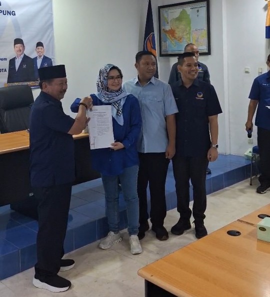 Surat tersebut diserahkan langsung Ketua Dewan Pimpinan Wilayah (DPW) Partai NasDem Lampung Herman HN, di sekretariat DPW NasDem Lampung, Kamis (22/8) malam.