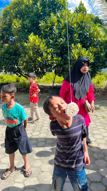 Sorak sorai dan gelak tawa terdengar dari setiap sudut lapangan Enggal Waras, Sabili, Sukarame. Mulai dari balita, anak-anak, ibu-ibu, hingga bapak-bapak ikut berpartisipasi dengan penuh semangat. Keceriaan tampak jelas ketika peserta berlomba, sementara penonton bersorak mendukung jagoannya.