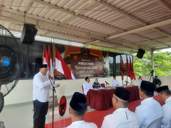 Bandarlampung (LW): Ketua DPD PDI Perjuangan Lampung, Sudin, mengajak seluruh kader PDIP untuk meneladani sikap sederhana dan penuh empati Nabi Muhammad SAW. Hal itu ia sampaikan dalam acara peringatan Maulid Nabi di Sekretariat PDI Perjuangan Lampung, Sabtu (6/9).