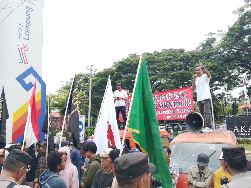 “Kami minta pergantian menyeluruh seluruh pejabat di Bank Lampung, termasuk empat direkturnya harus dicopot,” tegas Indra Mustain, Ketua DPP AKAR Lampung dalam orasinya.